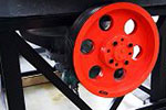 正5*26英尺铁板给矿机由美国A.C.公司生产制造,运用于德兴铜矿一期技术改造工程,自1989年初使用以来,其下托轮多次从托轮架上整体脱落,进入84英寸液压圆锥破碎机,给。